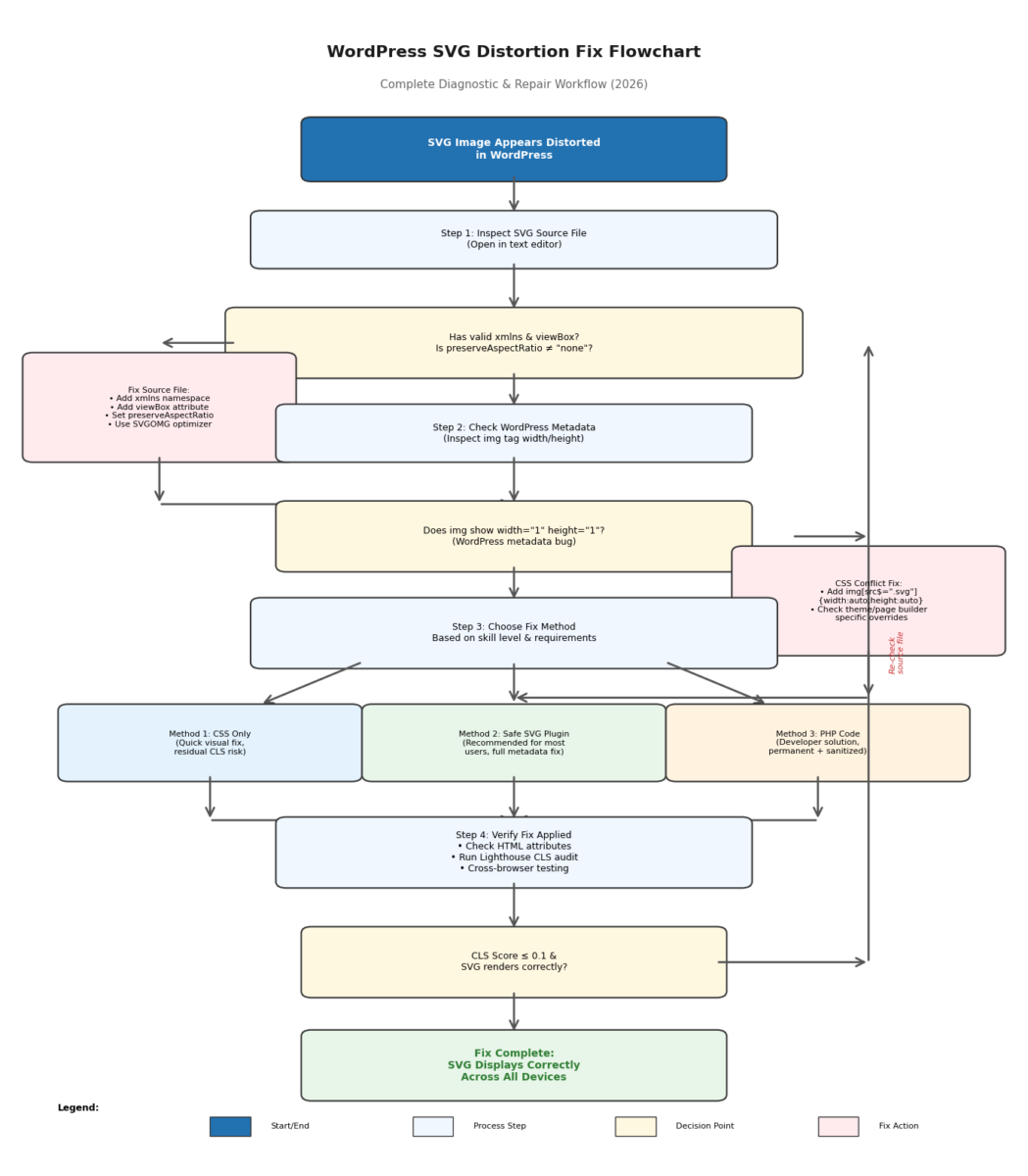 SVG distortion in WordPress is not a single bug but a cascade failure across five distinct technical layers. Understanding each layer is essential for applying the correct fix.